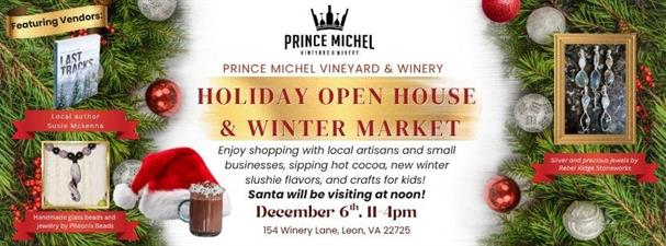 Join us for a festive day at the winery on Saturday, December 6th, from 11 a.m. to 4 p.m. for our Annual Holiday Open House and Winter Market!