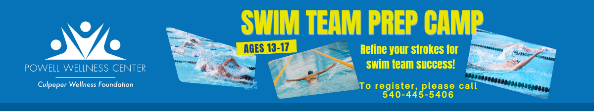 Swimmers ages 13-17, dive into our swim team prep camp at Powell Wellness Center's indoor pool! You’ll work on kicking power, turns, breathing & more to refine your strokes for swim team success!